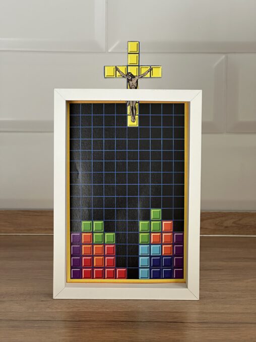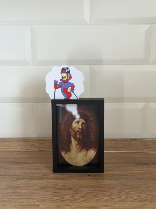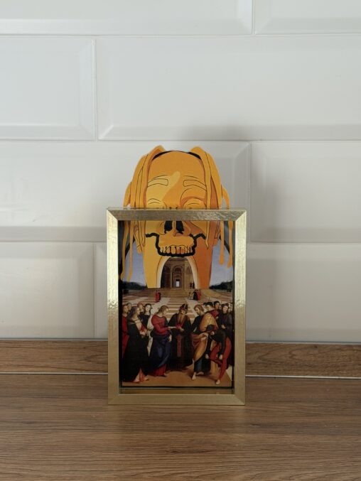 A playful blend of pop culture and sacred iconography, “Sei Proprio Veramente” reimagines a classic devotional image with a bold, ironic twist. Printed in high resolution on premium…