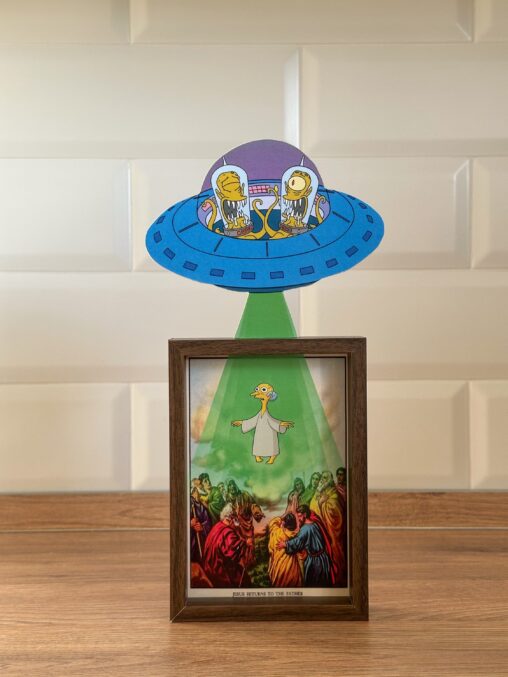 Product details: Dimensions: 26 × 16 cm Aliens and spaceship crafted in Forex for a unique three-dimensional effect Hand-signed by the artist Ready to hang — or to…