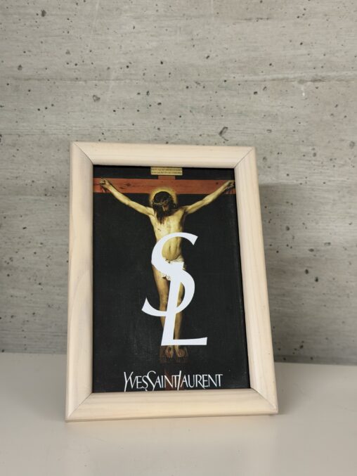 A bold fusion of fashion branding and sacred iconography, YSL Christ reinterprets a classical religious image through the lens of contemporary pop and luxury culture. Printed in high…